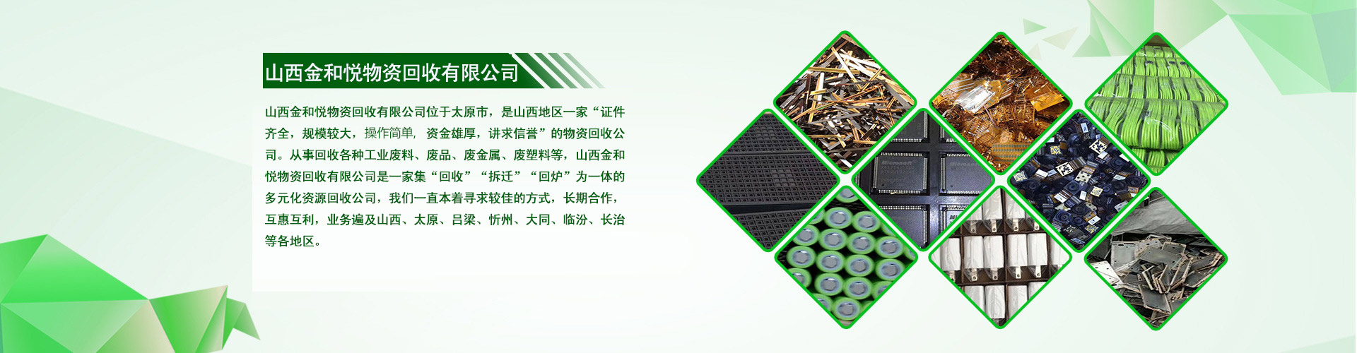 山西金和悅物資回收有限公司是一家從事廢舊物資回收,整廠設備打包回收的公司。主要可回收社會各行各業的廢舊物資,包括廢鋼廢鐵/廢銅廢鋁/稀有金屬/廢不銹鋼/廢舊機械設備/電線電纜/電池電瓶回收以及廢舊廠房整體設備打包回收。免費上門估價,現場付款,可帶工人上門,清理庫房。我公司立足于環保,利用閑置的資源,變廢為寶,循環利用,取之于民,用之于民,讓有效的資源得到合理的利用,充分體現它的價值。公司堅持“以質量求生存,以信譽求發展”的基本原則,為山西及周邊地區的企業、單位和個人提供安全、快捷的服務。歡迎各界有廢料或需要拆除的人士來電洽談業務!